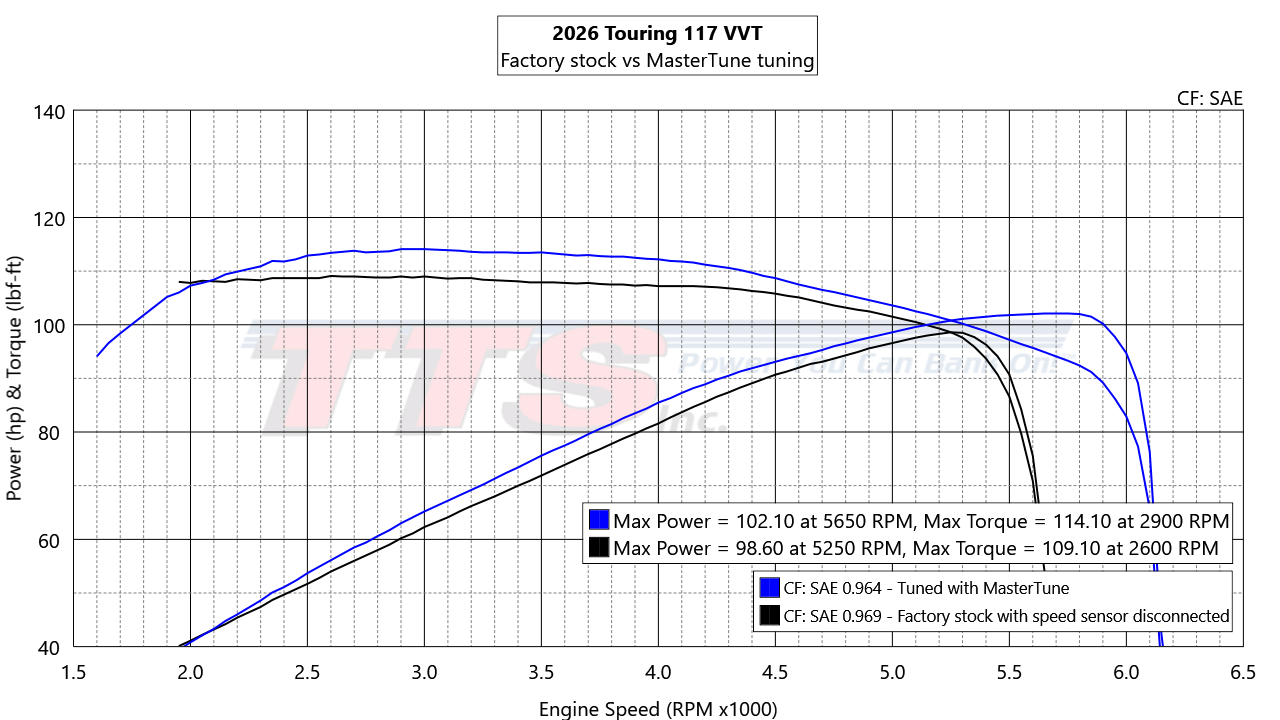 2026 Touring 117 VVT Factory stock vs MasterTune tuning
