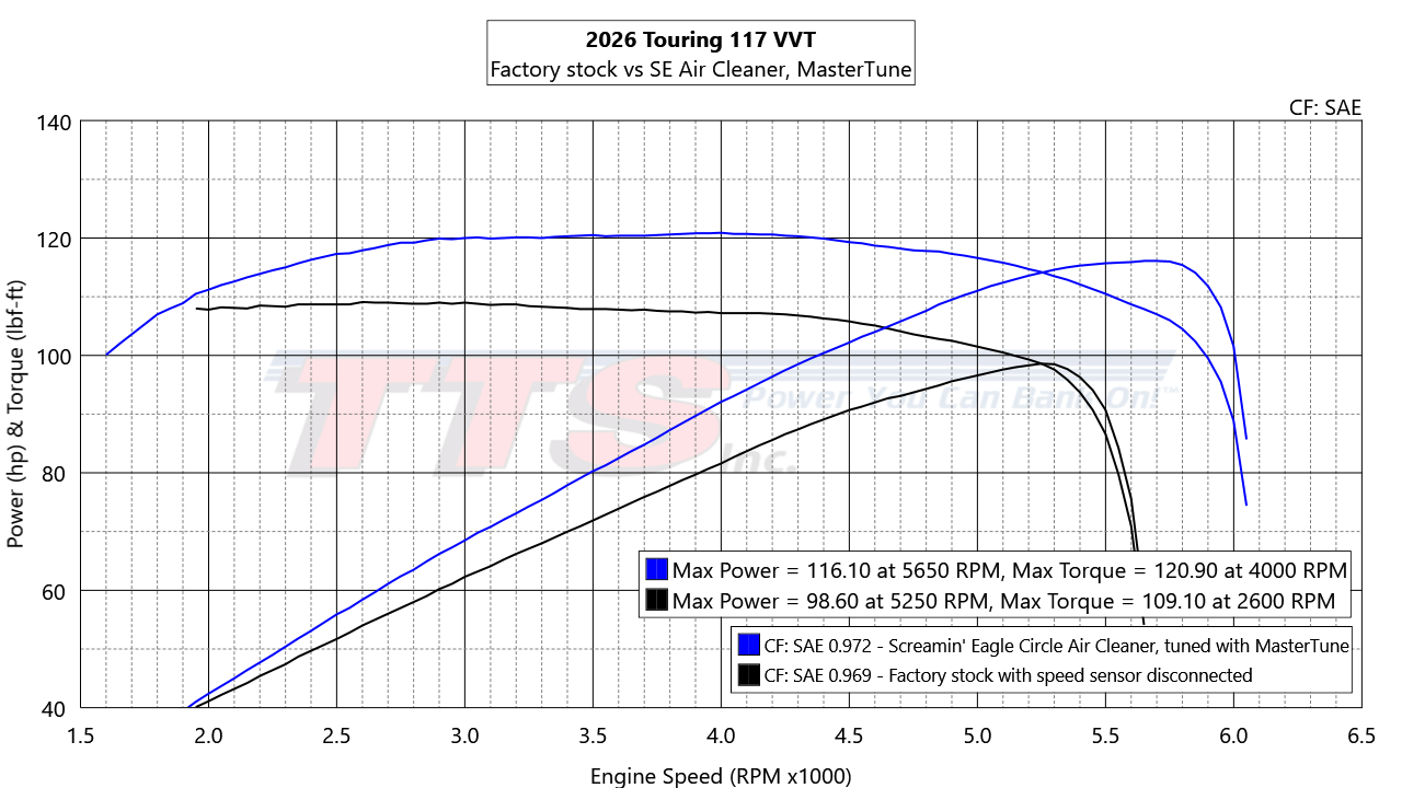 2026 Touring 117 VVT Factory stock vs SE Air Cleaner, MasterTune