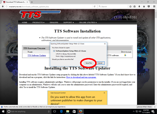 After clicking the download link, Firefox will ask you what you want to so with the file.